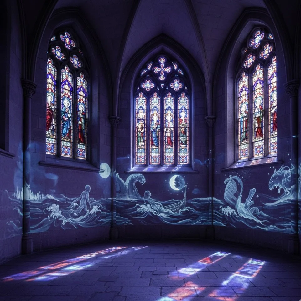 Stained Glass ComponentConservation StatusStrategic FunctionAesthetic AssignmentFigural PanelsStudio RestorationNarrative IlluminationVisual validation of storyLead CamesRe-leading requiredStructural IntegrityFixed Salt (Bonding)Exterior GlazingHurricane-grade installationLong-term ProtectionProtective AegisLED "Moonlight"Integrated with fixturesProduct IlluminationNarrative Lighting (Pattern 6)